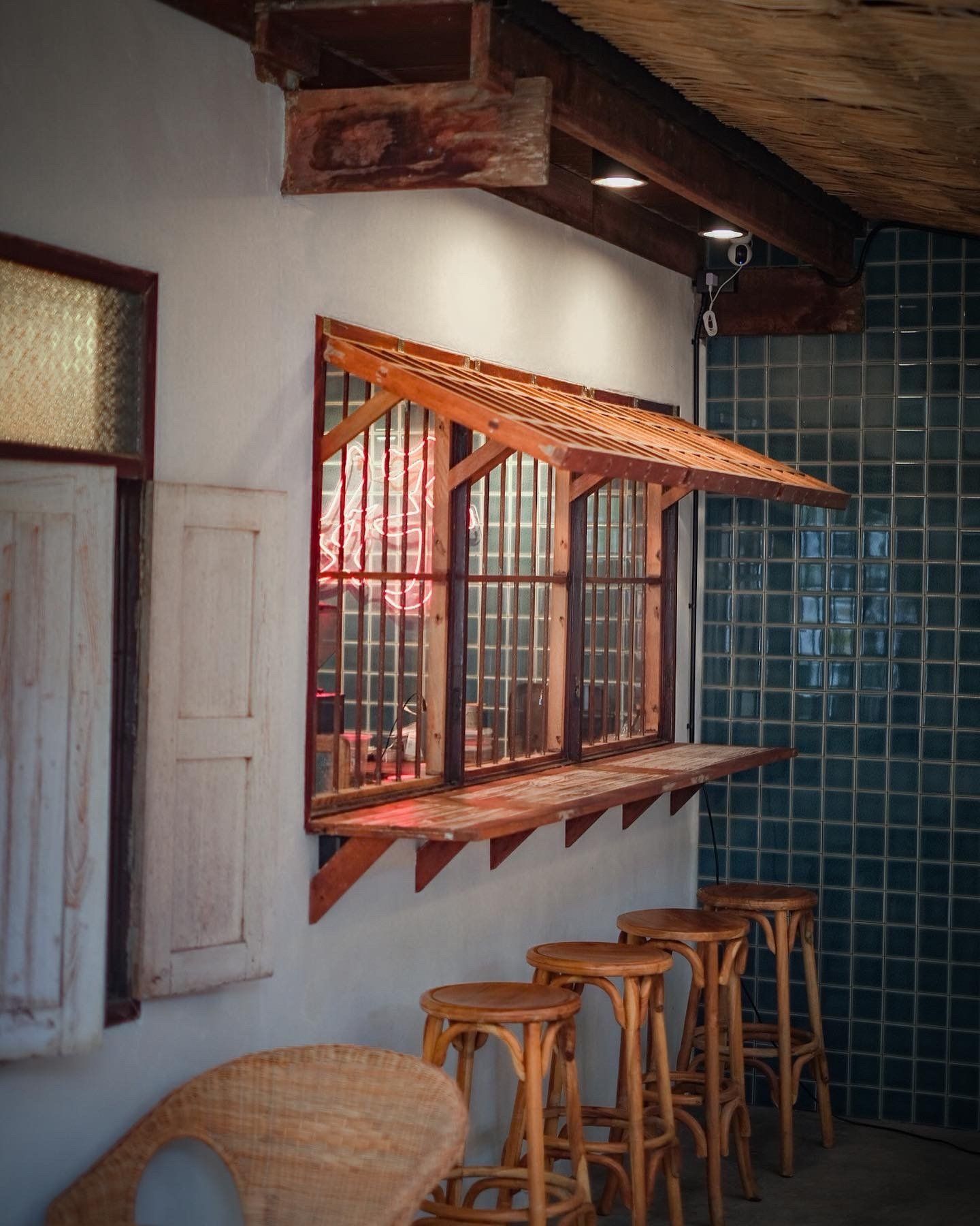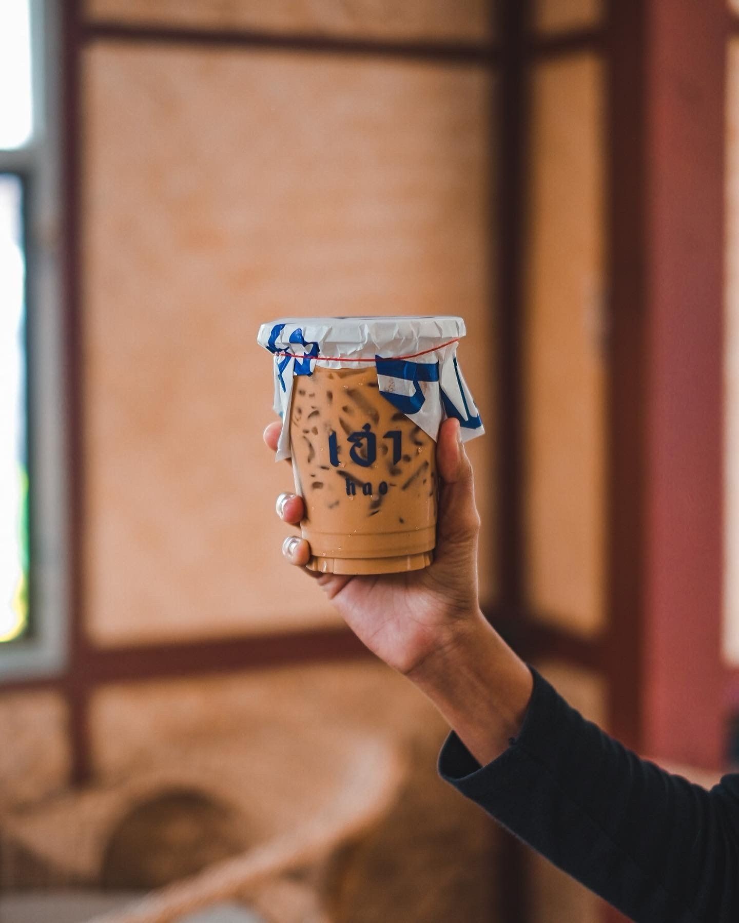 เมนูเครื่องดื่มที่นี่มีไม่เยอะ แต่ก็มีเมนูซิกเนเจอร์ที่ใครมาก็ต้องสั่ง คือ กาแฟมะพร้าวที่ท๊อปด้วยวิปปิ้งครีมกะทิ มีตัวอักษรจีนเก๋ๆ ด้วย